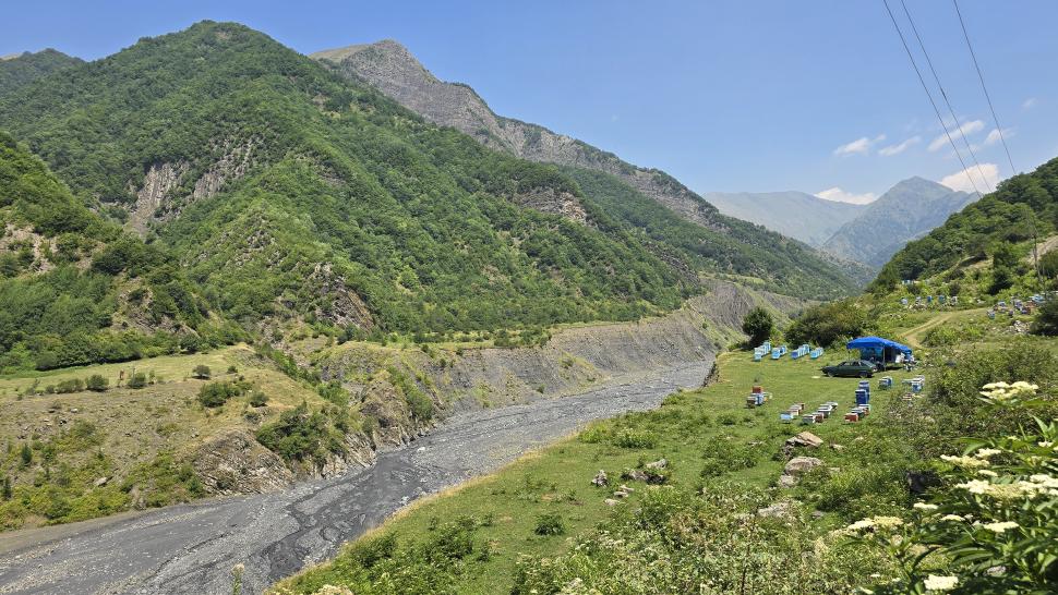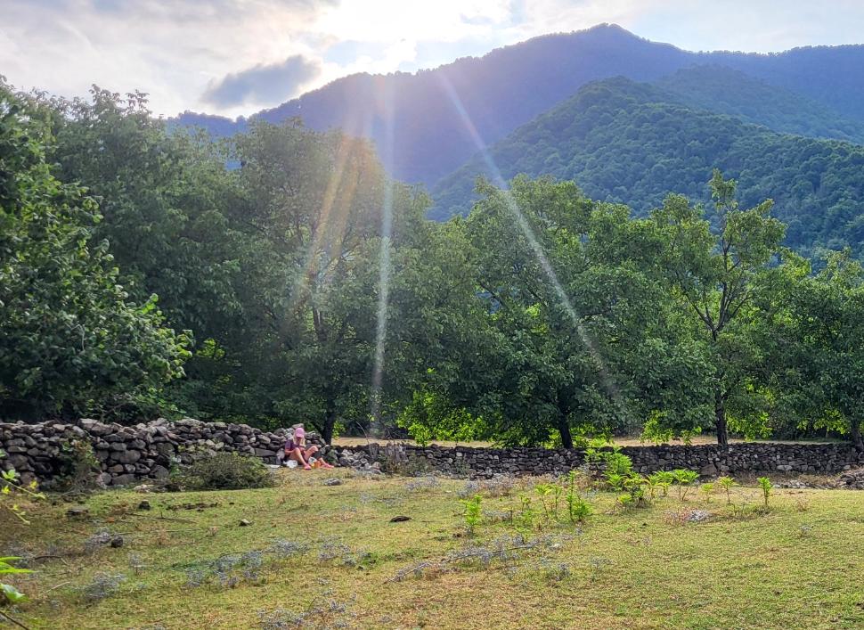 Heute ist es zum Frühstück mal bedeckt. Erst beim Wanderstart scheint die Sonne wieder unvermindert heiß. Wir wandern heute zum Abshluss nach Car oberhalb von Zaqatala, bevor wir am Abend in Sheki übernachten. Am Campingplatz wird Wasser nachgefüllt, alles sonst haben wir noch. Am Weg sind einige Familien, die mit ihrer Unruhe schöne Schattenplätze im Wald einnehmen.