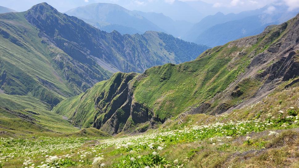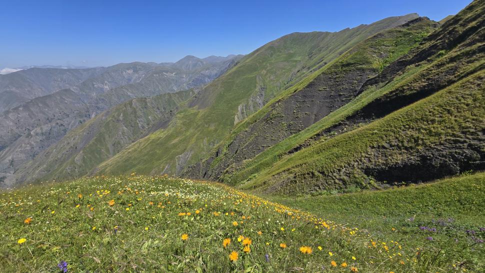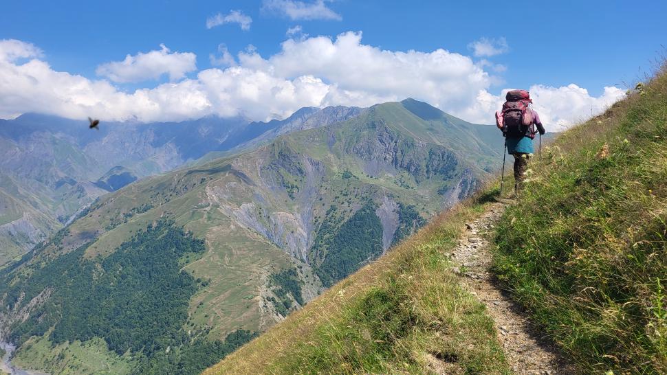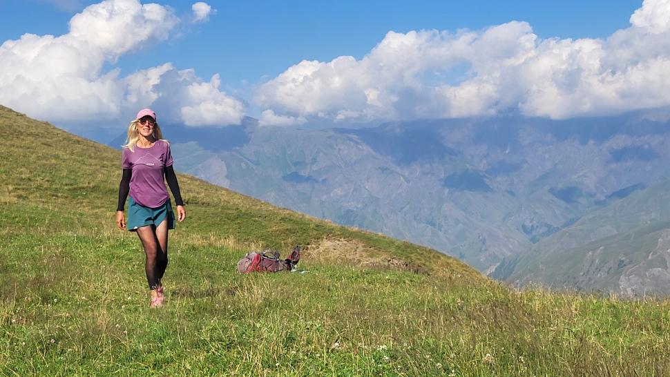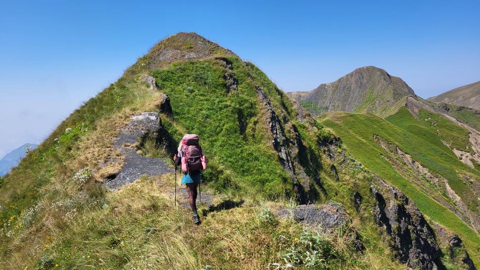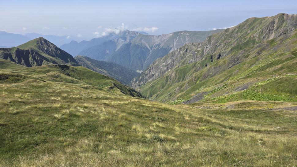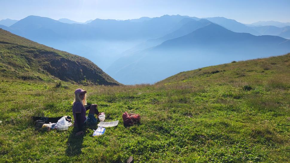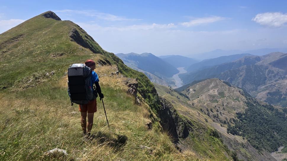 Friedlich und sonnig ist der Morgen mit grandiosem Blick auf die Berglandschaft, nachdem wir um 7 Uhr aus dem Zelt nur kurz Hundegebell gehört haben. Das Zelt muss trocknen, dann wandern wir über die Wiesen, meist auf dem Grat entlang. Die Herden treffen wir jeweils mit einem Hirten, eine sogar ohne Hunde. An einem Hang spricht uns ein junger Hirte an und warnt uns vor dem weiteren Weg in den Bezirk des weißen Flusses (oder doch Tees?). Seine vorgeschlagene Alternative hinunter ins Tal zu unserer Rechten mit einem Abschnitt auf russischem Gebiet kommt für uns aus mehreren Gründen nicht in Frage.