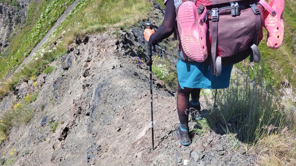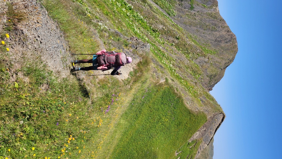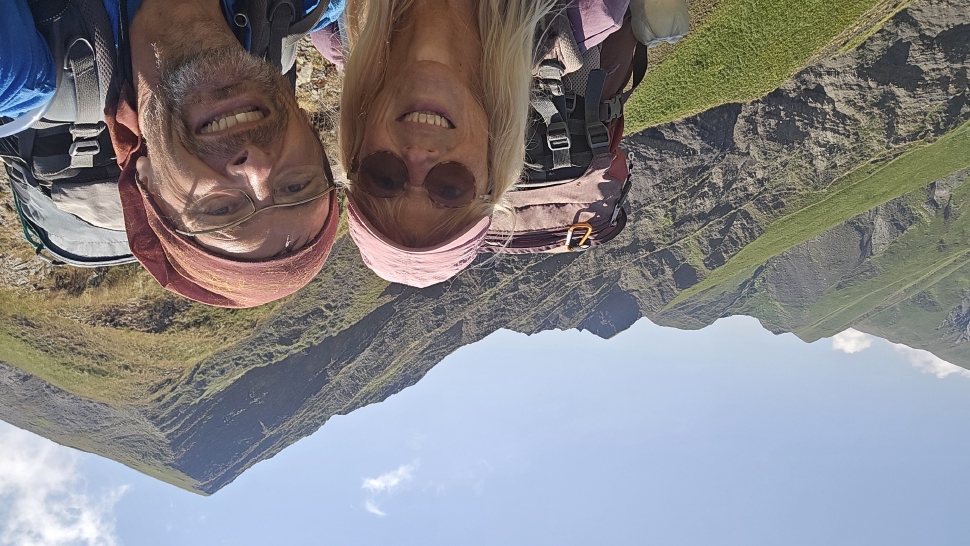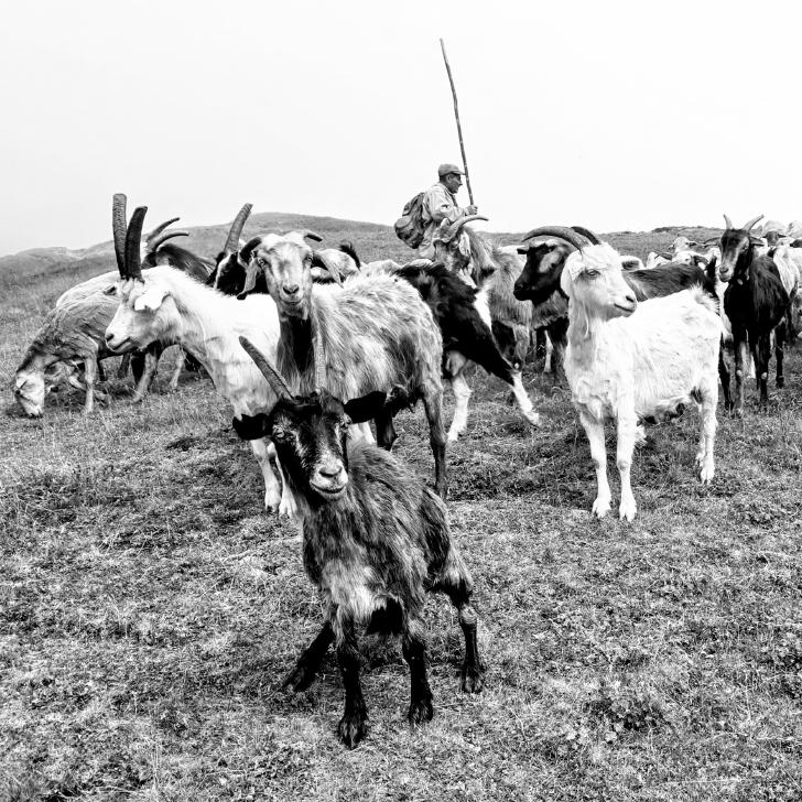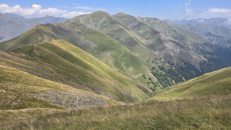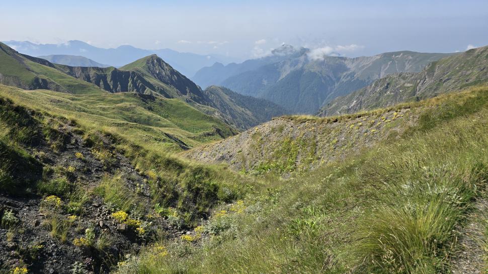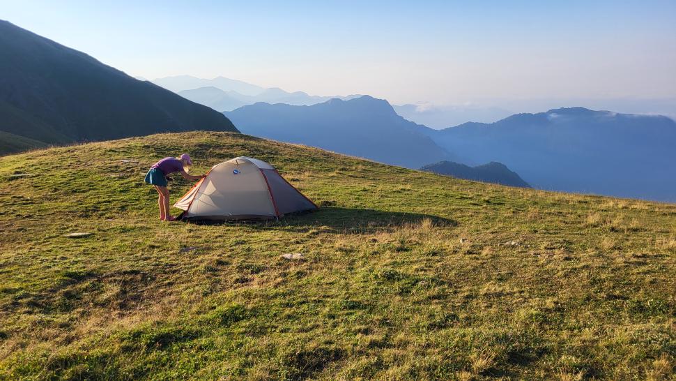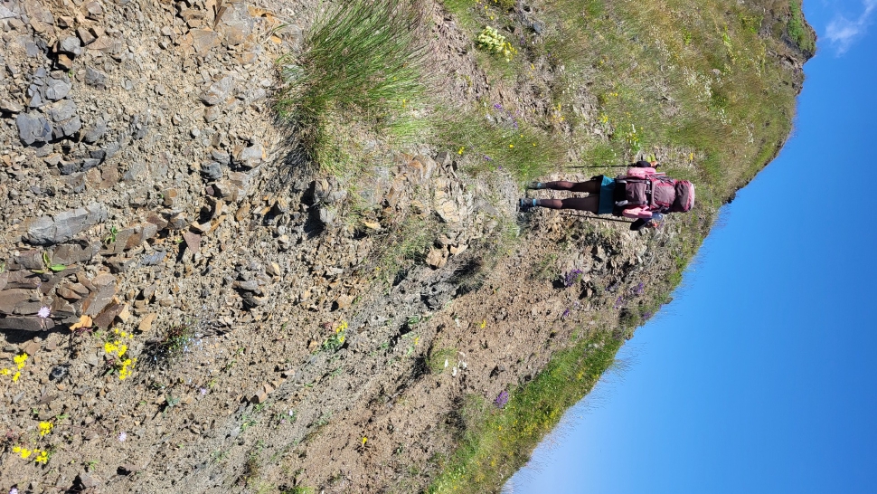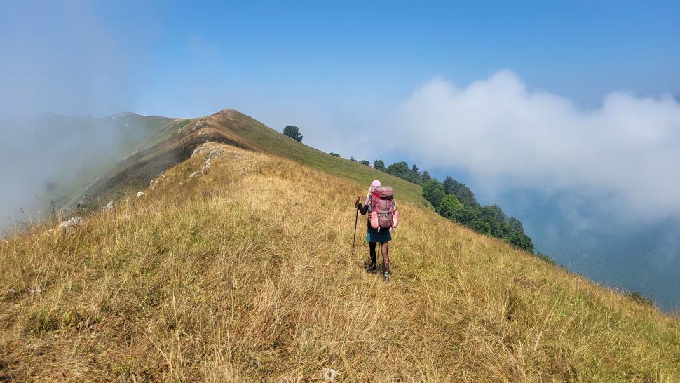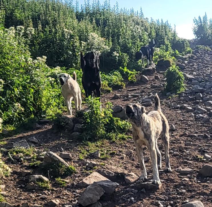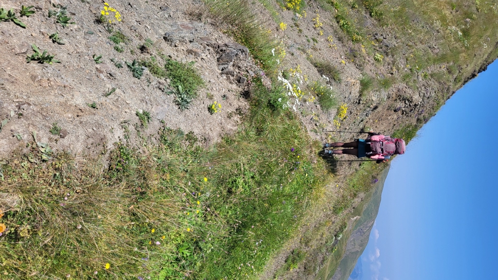 Um halb 7 Uhr werden wir von Hundegebell geweckt. Als wir etwas später aus dem Zelt kommen, ist es wieder ruhig und leer. Unser Frühstück bleibt ungestört, auch der Abbau, dann kommt die Herde mit den Hunden zurück. Wir gehen ein Stück unseres Weges gemeinsam, sind dann aber schneller. Die tolle Aussicht können wir noch eine Weile genießen, die wenigen Wolken sind unterhalb. Wir treffen noch einen Hirten, mit dem wir ein wenig austauschen, wie immer eher mit Gesten als mit Worten. Eine Einladung zum Tee in einem Shelter lehnen wir ab.