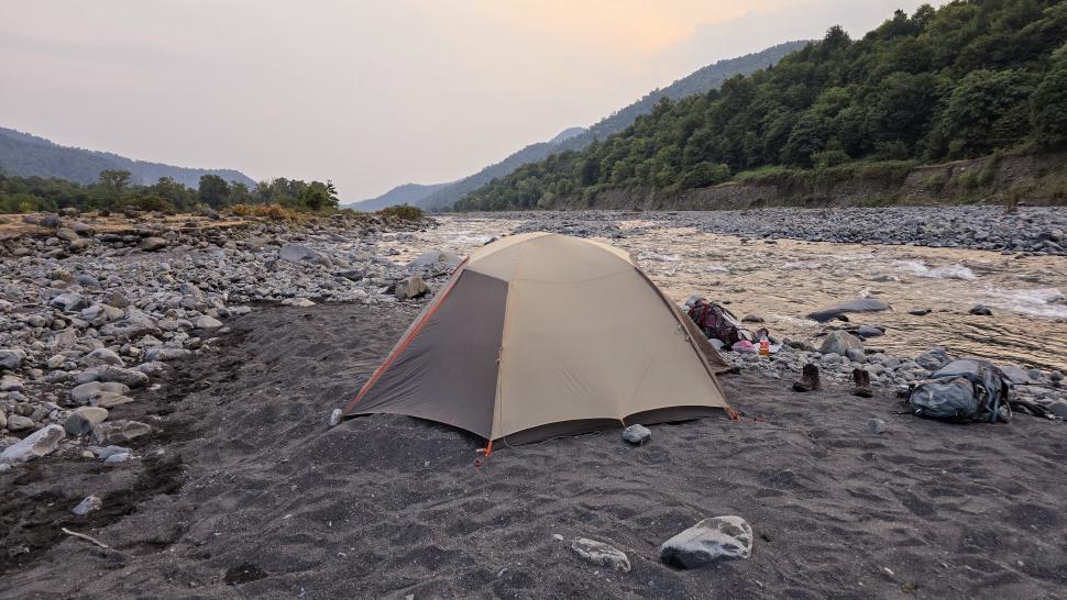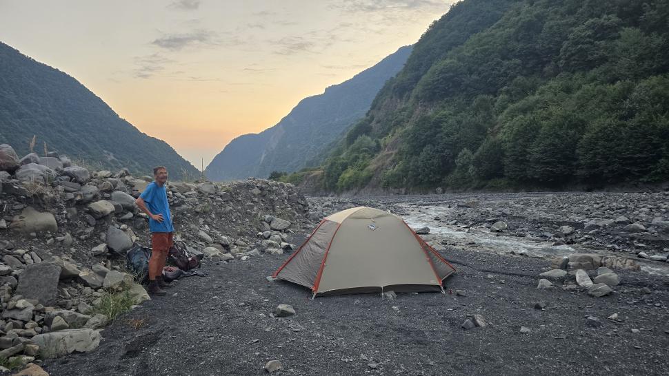 Nach unserem Bad kommen noch 4 Soldaten zum Baden. Wir furten zurück auf die Qebizdere Seite, suchen uns hier einen Platz mit ausreichend Abstand von anderen, und chillen hier mit Füßen oder mehr im Wasser. Hier bauen wir auch das Zelt auf. Der letzte Sonnenuntergang am Zelt ist schön, die letzte Nacht im Zelt ruhig.