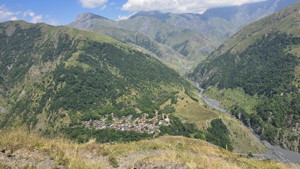 In Qashqacay lassen wir uns am Laden absetzen, ein kleiner Einkauf ist schon wieder nötig. Hübsche alte Häuser gibt es hier auch. Wir gehen ans Ufer des Qashqacay Flusses. Finden wir hier einen guten Zeltplatz? Nein, wir nehmen lieber einen auf der anderen Seite auf einer kleinen Wiese etwas oberhalb des Ufers. Der Fluss ist in dieser Zeit eher ein Bach, man kommt leicht hinüber und wir können uns nun nach dem Aufbau frisch machen. Zu uns gesellt sich ein junger Mann mit Englischkenntnissen aus dem Dorf. Wir erzählen unsere Wanderplanung und fragen auch, ob es Bären oder Wölfe gibt - Ja, im Wald schon. OK. Er geht wieder und wir erleben den Moment der gesamten Sommerreise: Der Imam singt, und seinen Gesang begleitet Geheul. Wir blicken zum Zelt, denn das Geheul kommt aus dieser Richtung. Wir sehen nichts im Licht der Dämmerung, gehen zum Zelt und sind etwas beruhigter, dass das Geheul von weiter oberhalb aus verschiedenen Richtungen im Wald kommt. Kurz nachdem der Imam fertig ist, beendet auch der Schakal-Chor seine Begleitung. Zunächst dachten wir an Wölfe, doch später erfahren wir von einem Hirten, dass es Schakale waren - nicht gefährlich. In der Nacht bleibt alles ruhig.