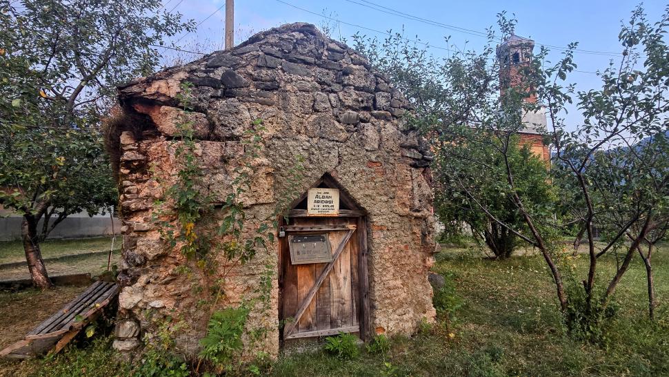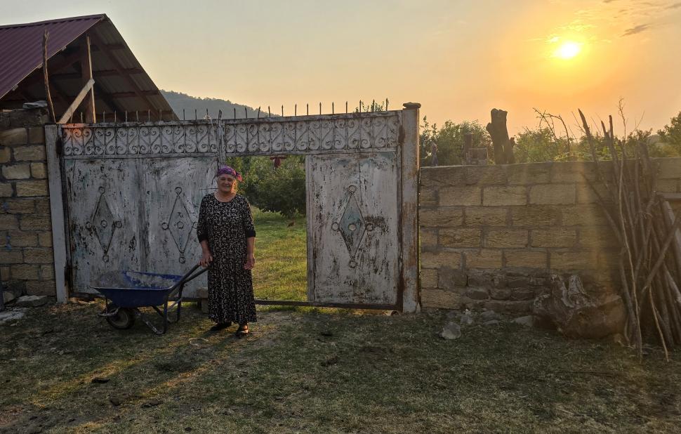 Aber nun haben wir es unverletzt geschafft. Der Weg ist nun wieder super klar und breit. Wo führt er hinter uns hin? Nach kurzer Zeit gelangen wir nach Mamrux. Hier sind ganz offenbar nicht viele Touristen. An einem der ersten Häuser steht eine Frau an der Schubkarre vor dem Tor. Jetzt müsste man plaudern können. Auf dem Weg durch den Ort zum Laden scheint die Abendsonne auf die Häuser. Beim Laden (Magazin) bekommen wir eine kleine Führung zur alten Moschee und Albanischen Kirche gegenüber. Hier bekommen wir auch ein Taxi nach Zaqatala, weil die Wanderung auf diesem Abschnitt nicht interessant klingt. Eine Unterkunft haben wir noch nicht. Unser erstes Ziel, das EZ Hotel kann uns kein Zimmer anbieten, ein Hotel im Ausgeh-Zentrum hat geschlossen. So nehmen wir ein Taxi an den Stadtrand ins Tala Rooms. Das Zimmer ist gut, aber der Verkehr ist sehr laut zu hören.