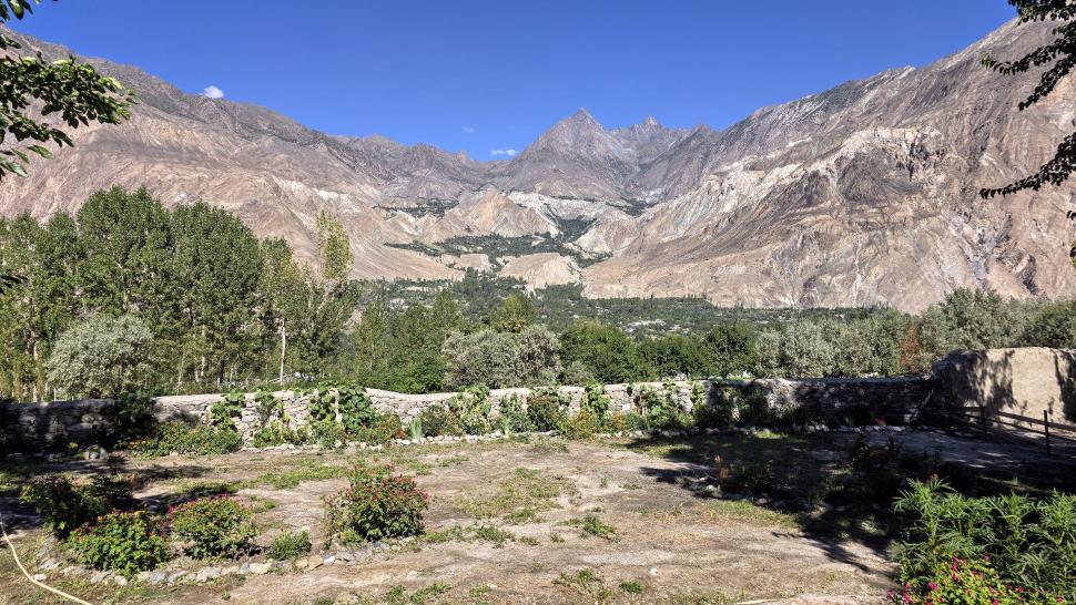 Ach ja, am Eingang in den Flughafen, auch bei Inlandsflügen, wird das Ticket kontrolliert. Als Mail auf dem Smartphone reicht es zum Glück. Beim Einchecken wird unser Wunsch, rechts zu sitzen, erfüllt. Bei dem guten Wetter ist die Sicht auf den Nanga Parbat ausgezeichnet. Ein schöner Start in die Reise. Die anderen Reisegruppen aus dem Flugzeug müssen wie wir am Ausgang aus dem Flughafengebäude noch ein paar Daten aufschreiben lassen, z.B. den Guide mit Telefonnummer. Hakim empfängt uns direkt vor der Tür. Wir fahren zuerst nach Skardu, holen Geld und eine SIM Card, allerdings, weil Sonntag ist, ohne die offizielle Zuordnung zu uns. Es ist heute auch unmöglich, das Geld zu tauschen, mit dem wir Hakim gerade für die gesamte Tour bezahlt haben. Das wird erst am Montag über einen Kousin gelingen.