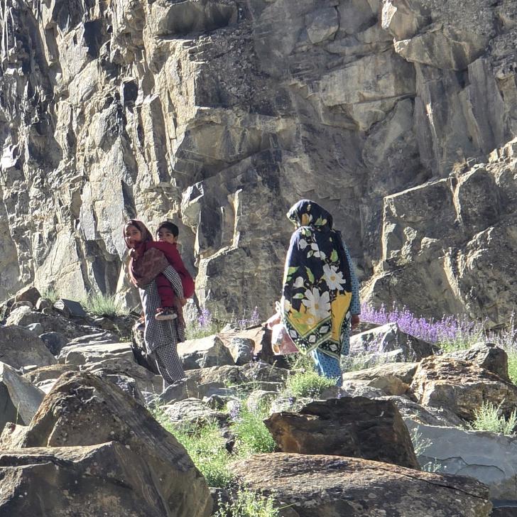 Seit gestern funktioniert das Internet in Chatorkhand nicht. Heily ist wohlbehalten um 1 Uhr nachts angekommen, weil sie noch eine Übersetzungs-Arbeit fertigstellen und abschicken wollte; nun ja. Für uns startet heute die ursprünglich geplante Wanderung mit einer Jeepfahrt nach Handis (auf der Karte nördlich von Chatorkhand), von dort werden wir westlich wandern mit ein paar Nord-Süd-Schlenkern. Wir gehen hier schon ein wenig spazieren, entdecken schöne Ausblicke, und bekommen noch Lunch, bevor es wirklich losgeht. Die Porter Ali-Mahdad (von uns Strupp genannt) und Ahmad-Ali begleiten uns mit ihren Eseln.