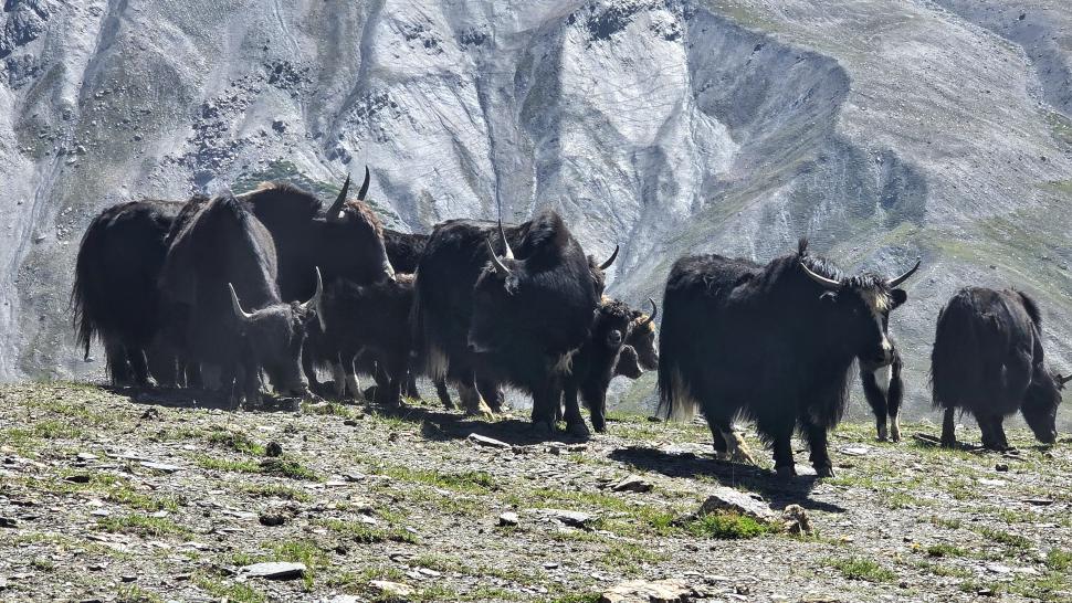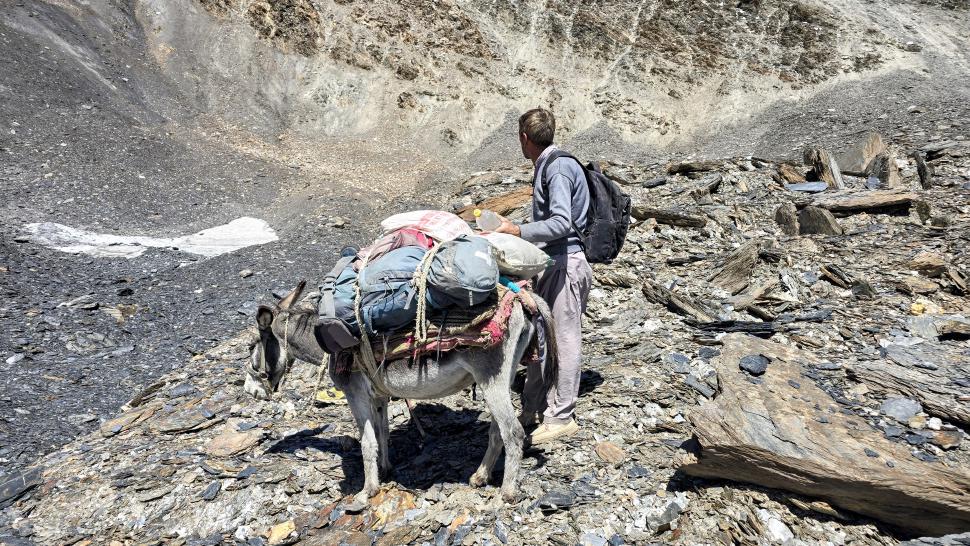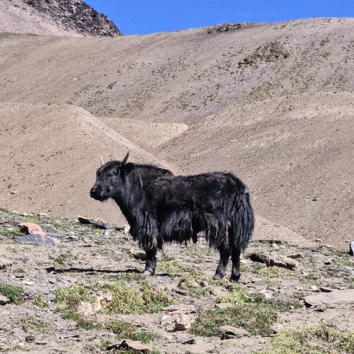 Die Höhe macht uns auch auf dieser Wanderung nichts aus. Der Schlaf war ruhig und ungestört; der Morgen ist klar. Die Yak kommen wieder zu uns. Und wir brechen entspannt zum Atar Pass (4746 m) auf und sind nach etwas über einer Stunde oben, wobei unterwegs noch ein wenig Quarz geschürft wurde.